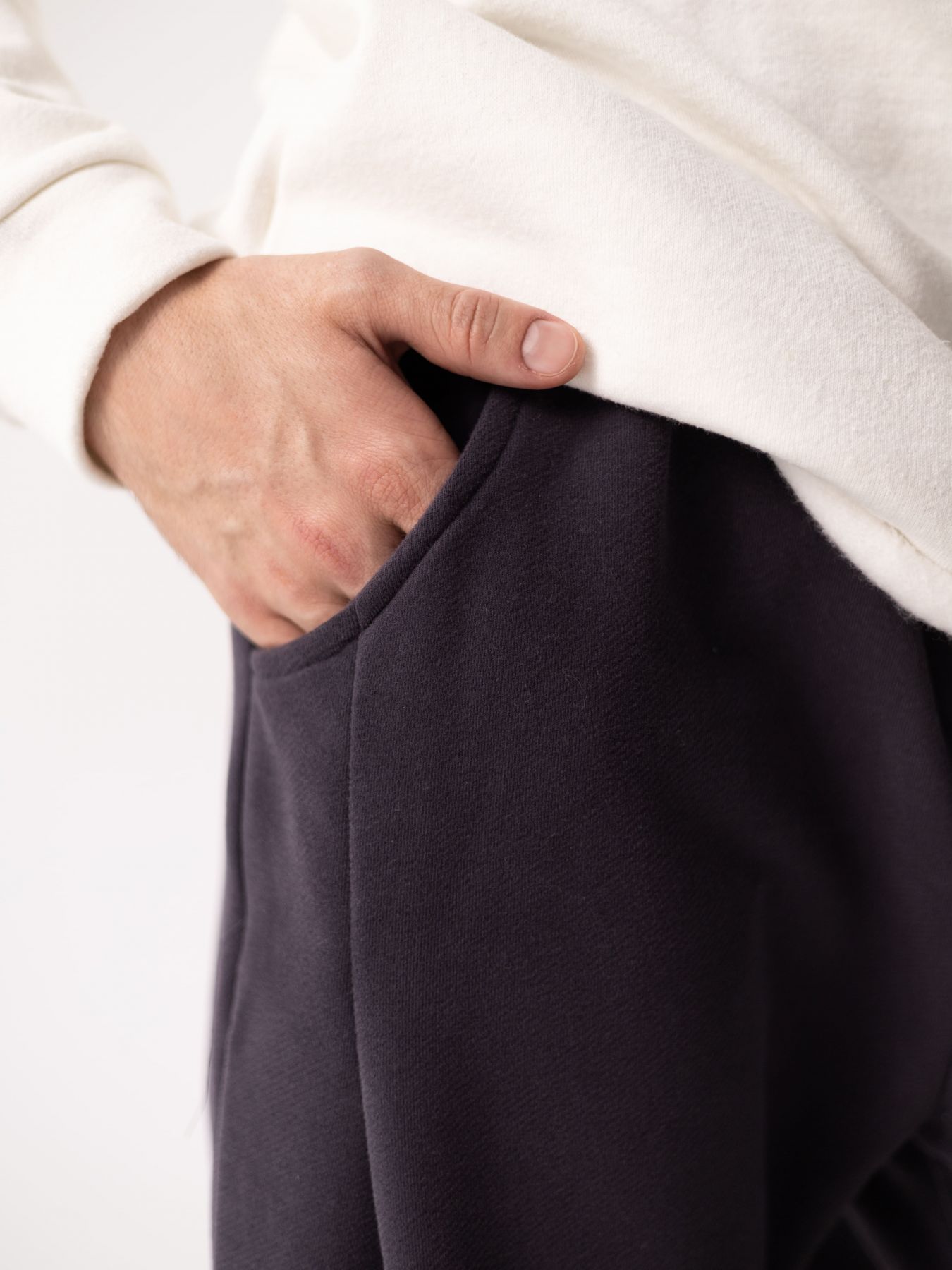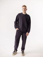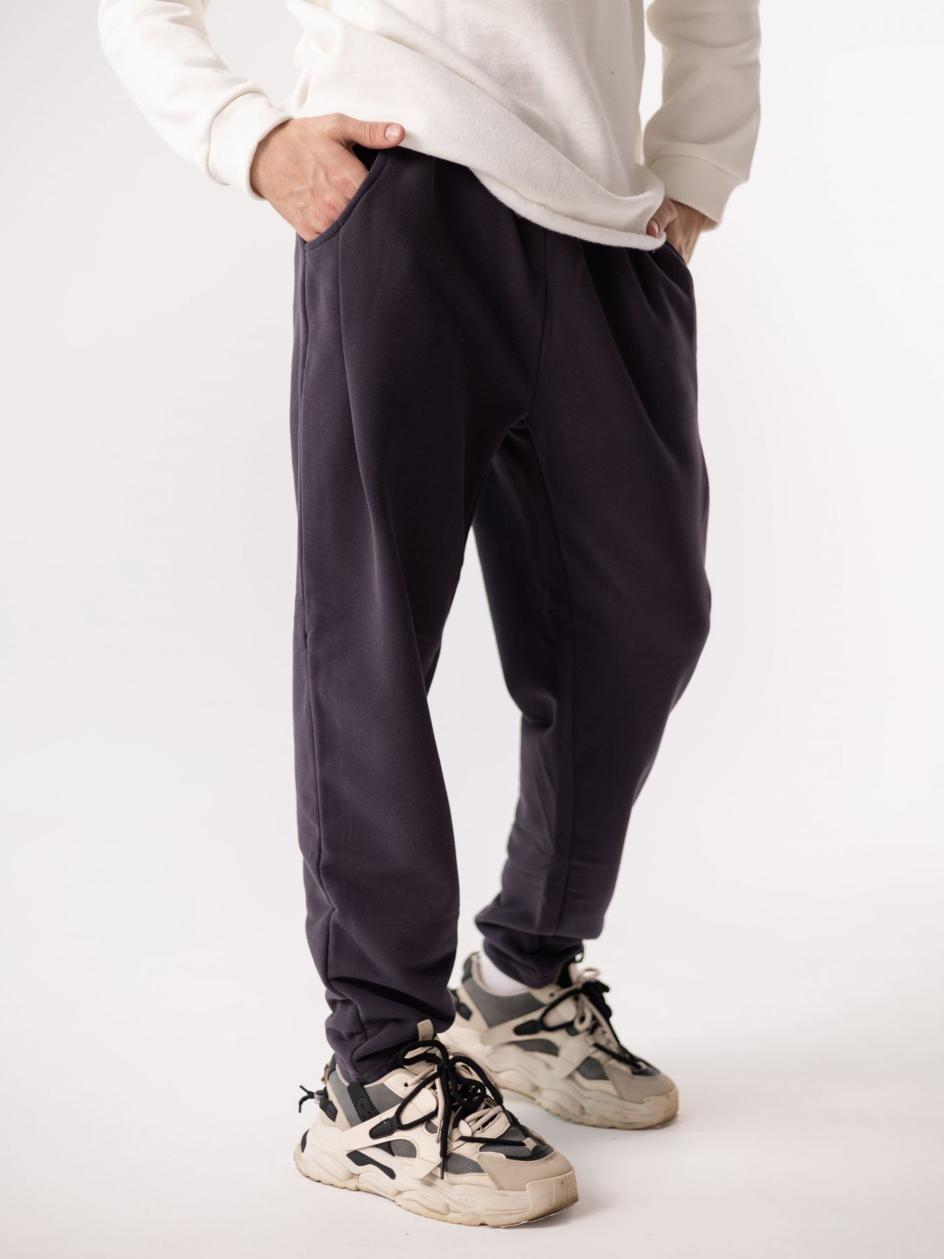 Объемные брюки в графитовом цвете, зауженные к низу, из хлопка с эффектом велюра (футер 3х нитка без начеса).