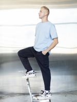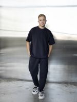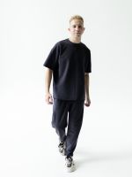Объемные брюки в графитовом цвете, зауженные к низу, из хлопка с эффектом велюра (футер 2х нитка без начеса).