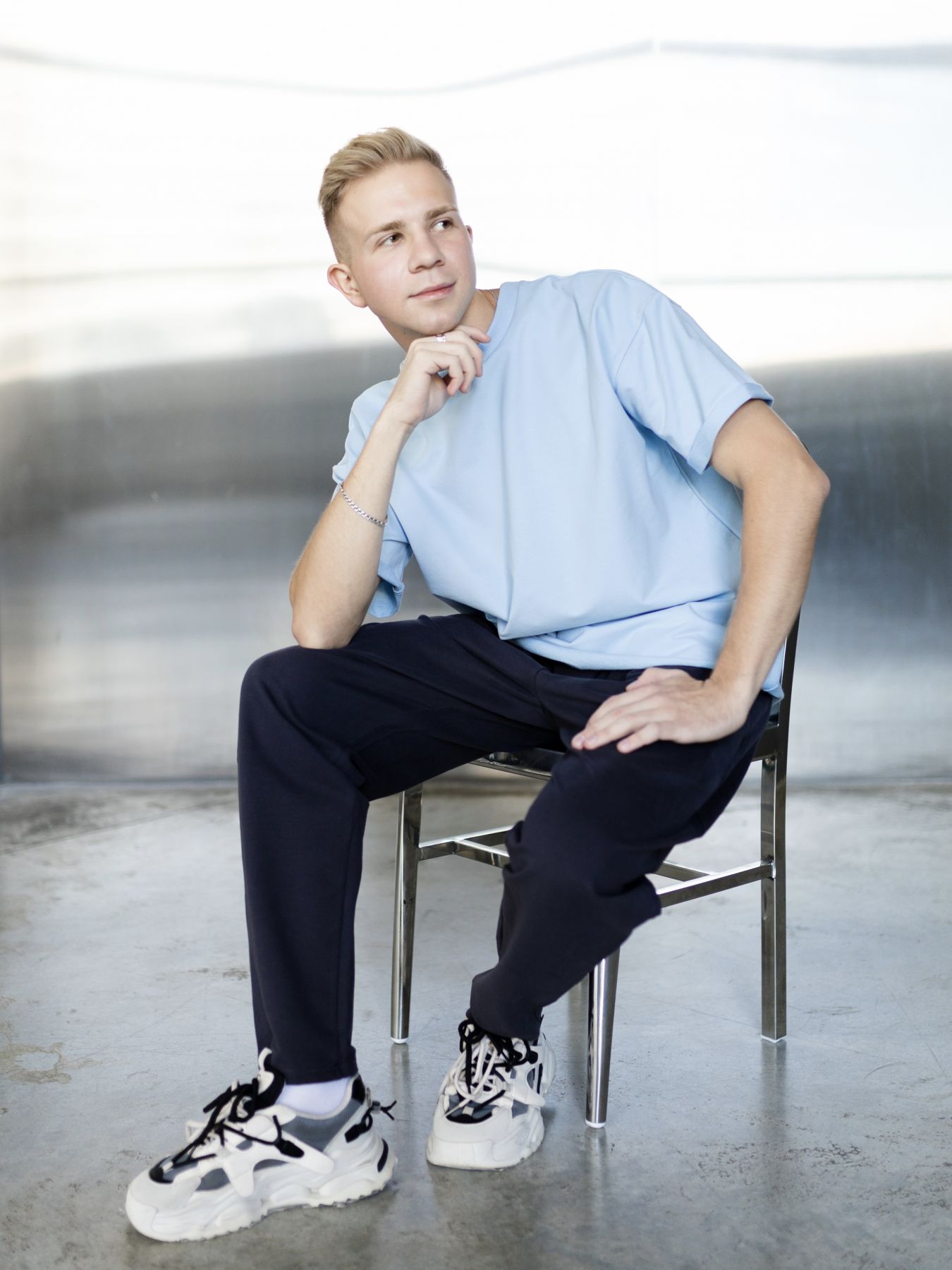 Нежно-голубая футболка из плотного футера с эффектом велюра