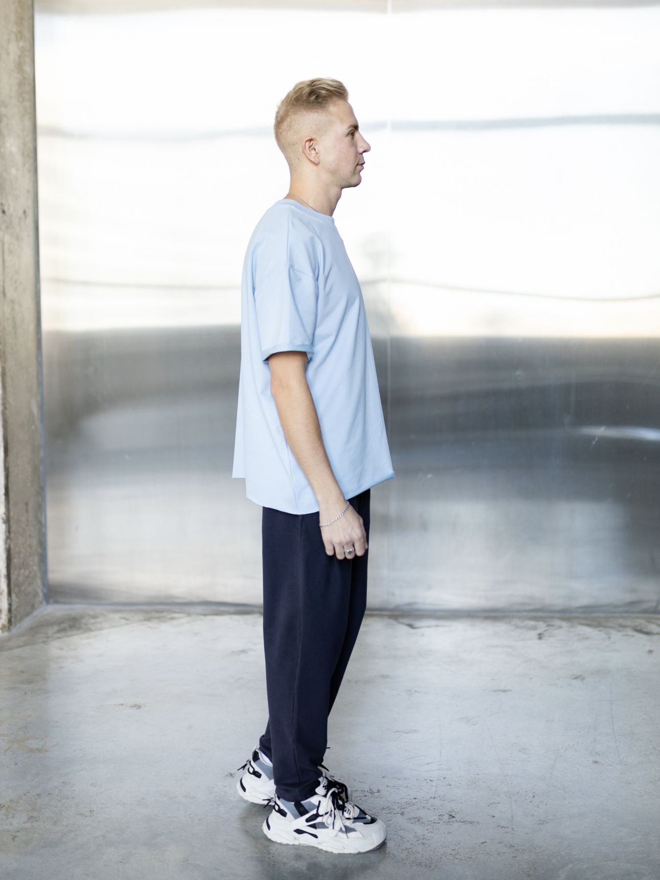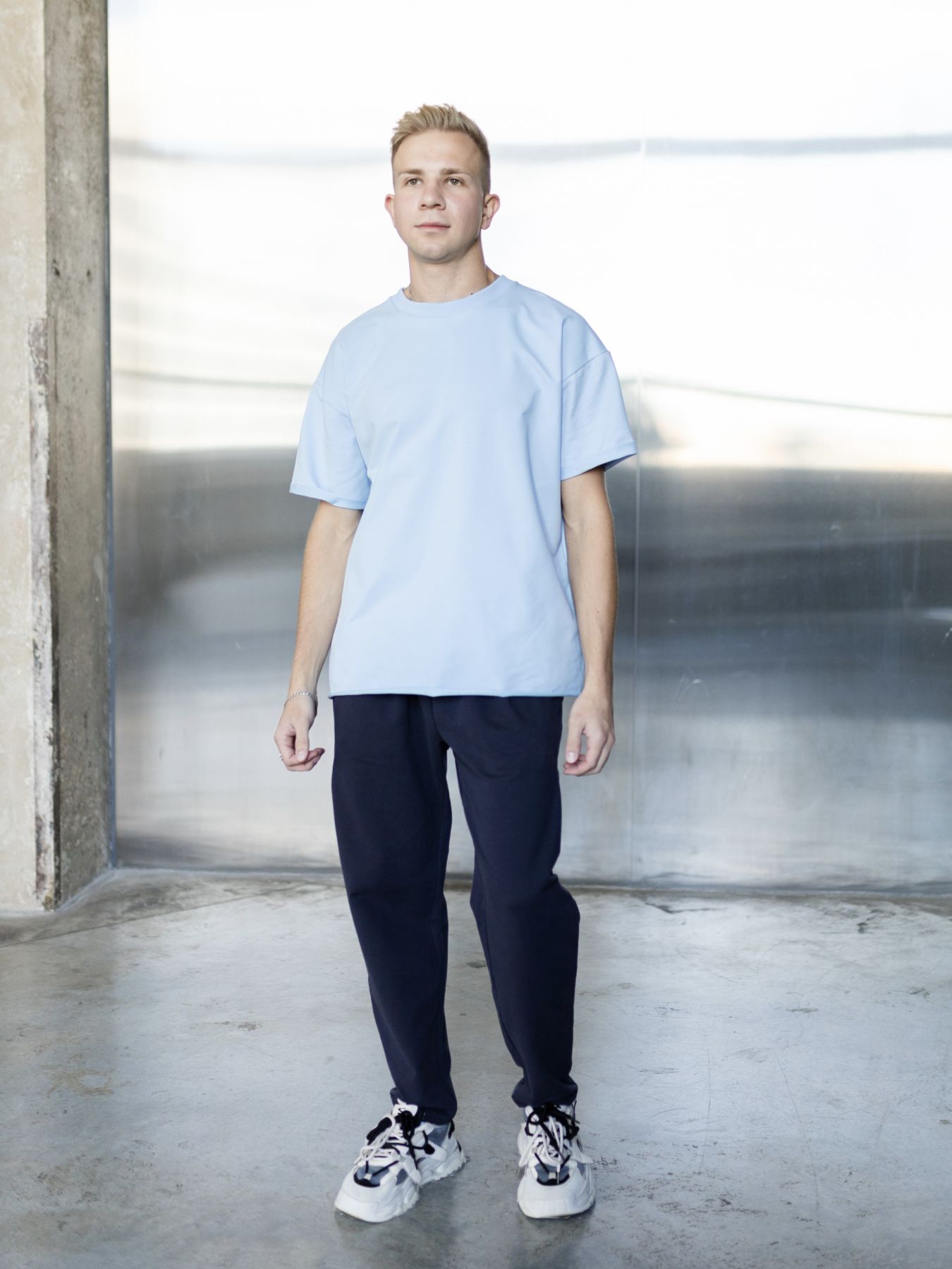 Футболка оверсайз унисекс свободная удлиненная из очень мягкого турецкого футера с эффектом велюра цвета неба. Воротник отделан тканью в рубчик, шов оформлен киперной лентой. Удобная и комфортная футболка в современном дизайне на каждый день. Шов рукава и низа не требует дополнительной обработки, поэтому вы можете легко укоротить длину по своему желанию.