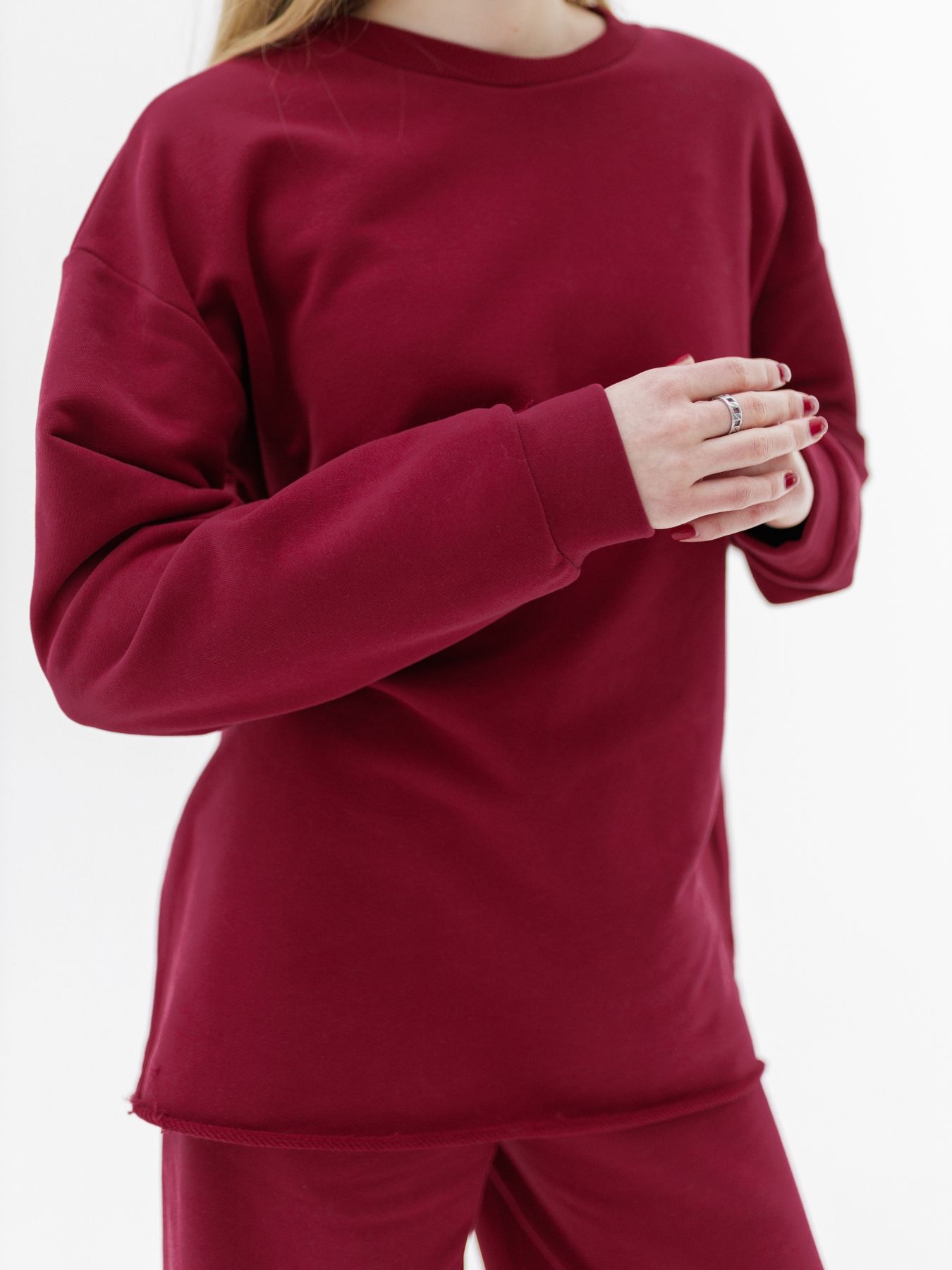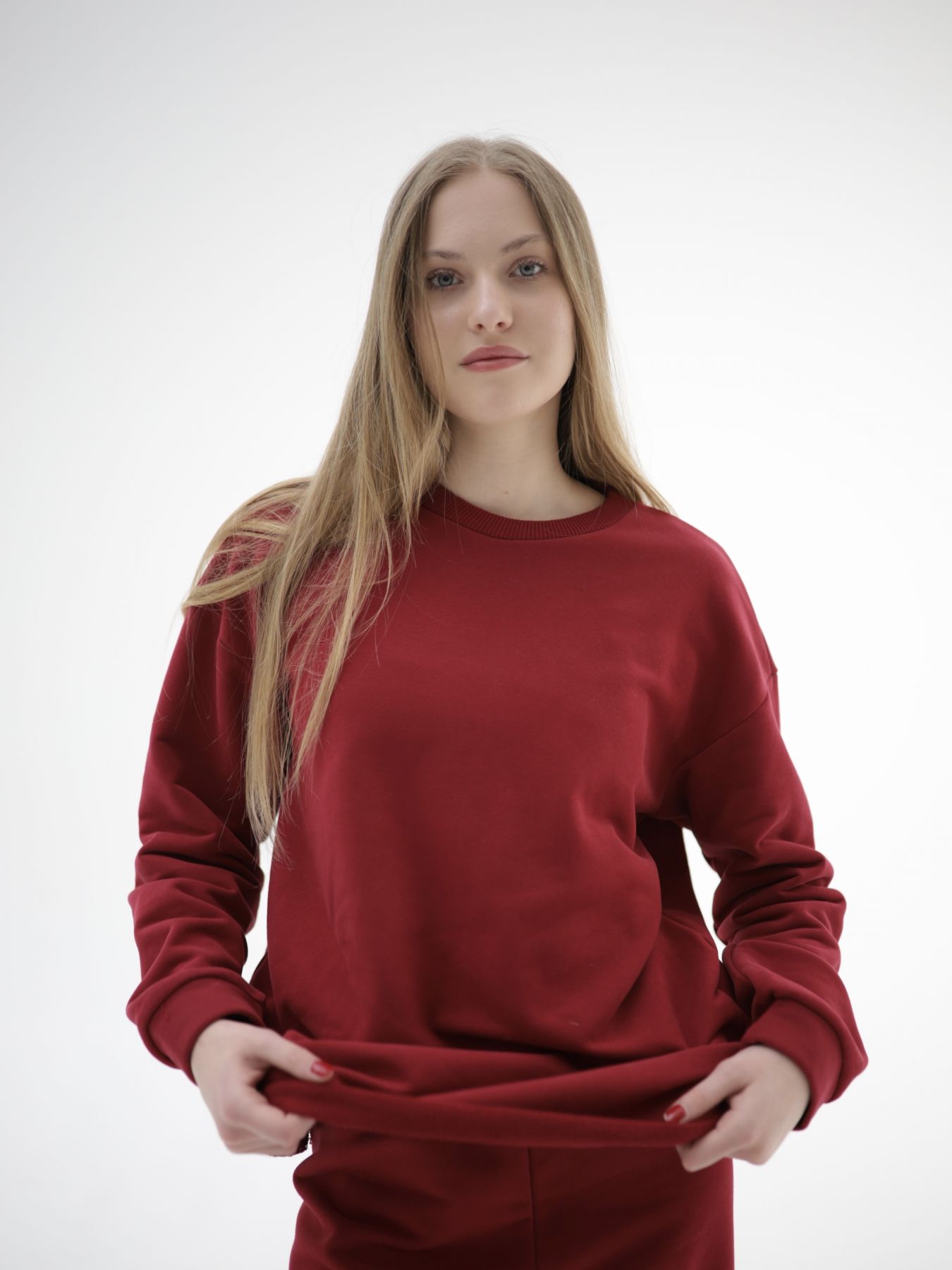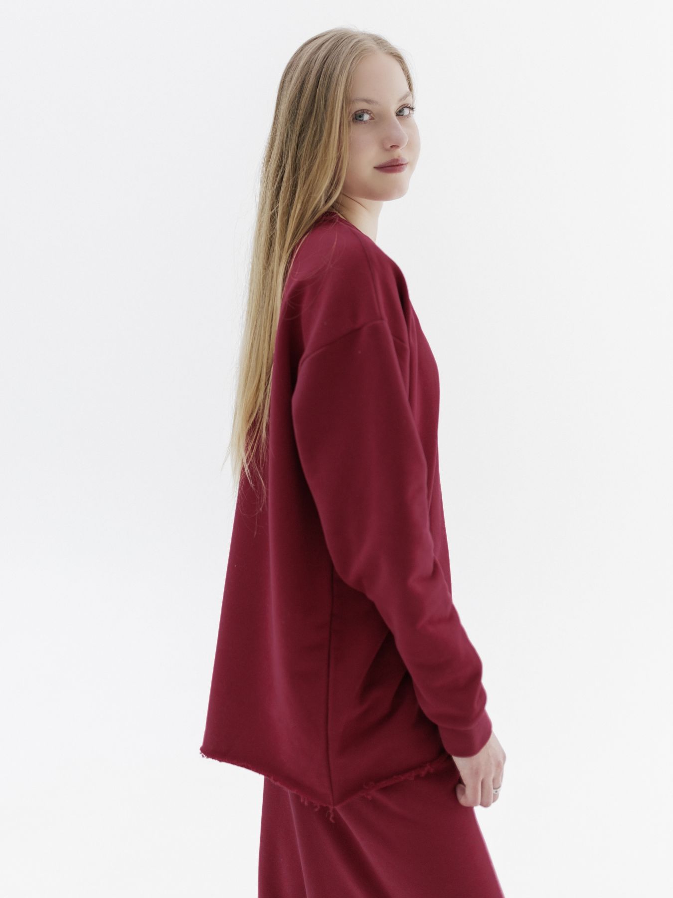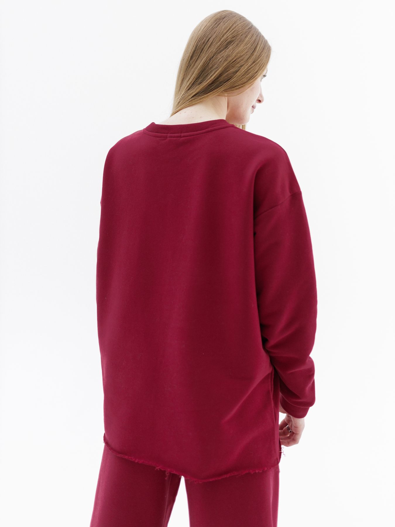 Свитшот свободного кроя с рукавами на манжетах в цвете брусника.