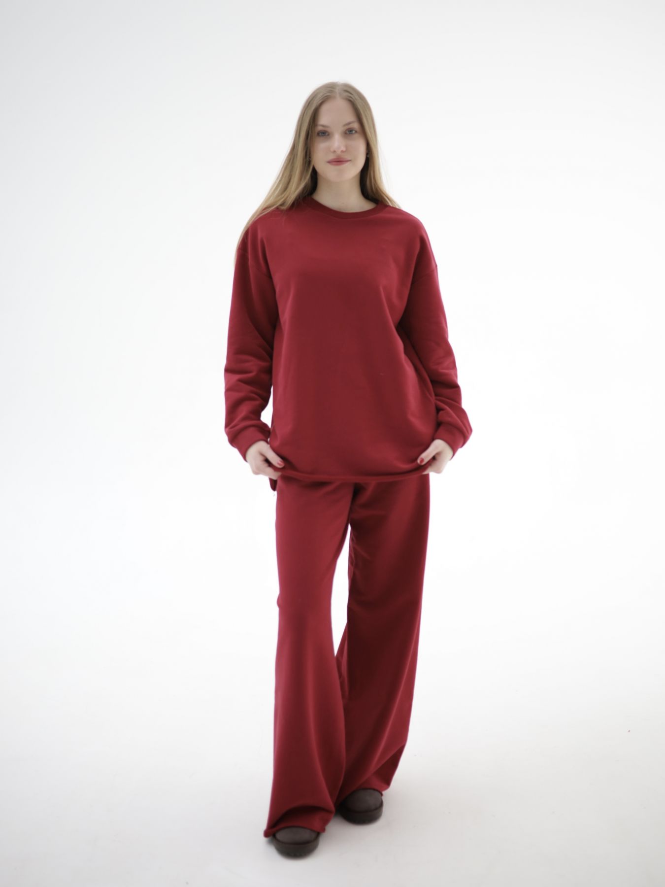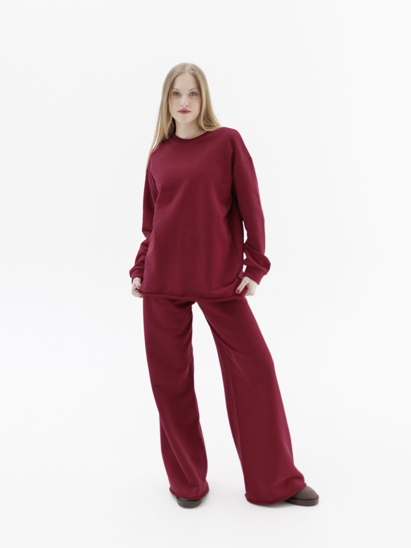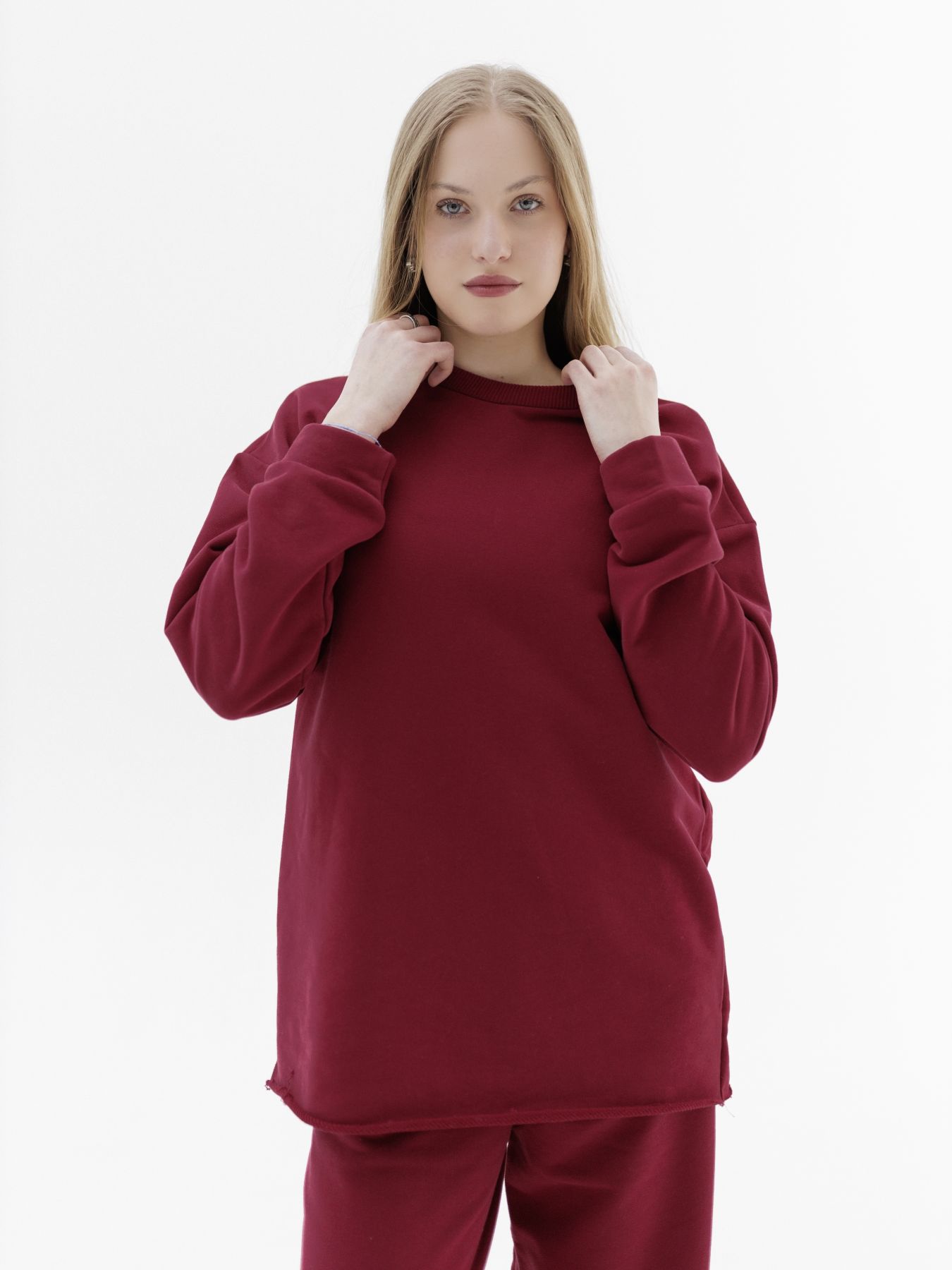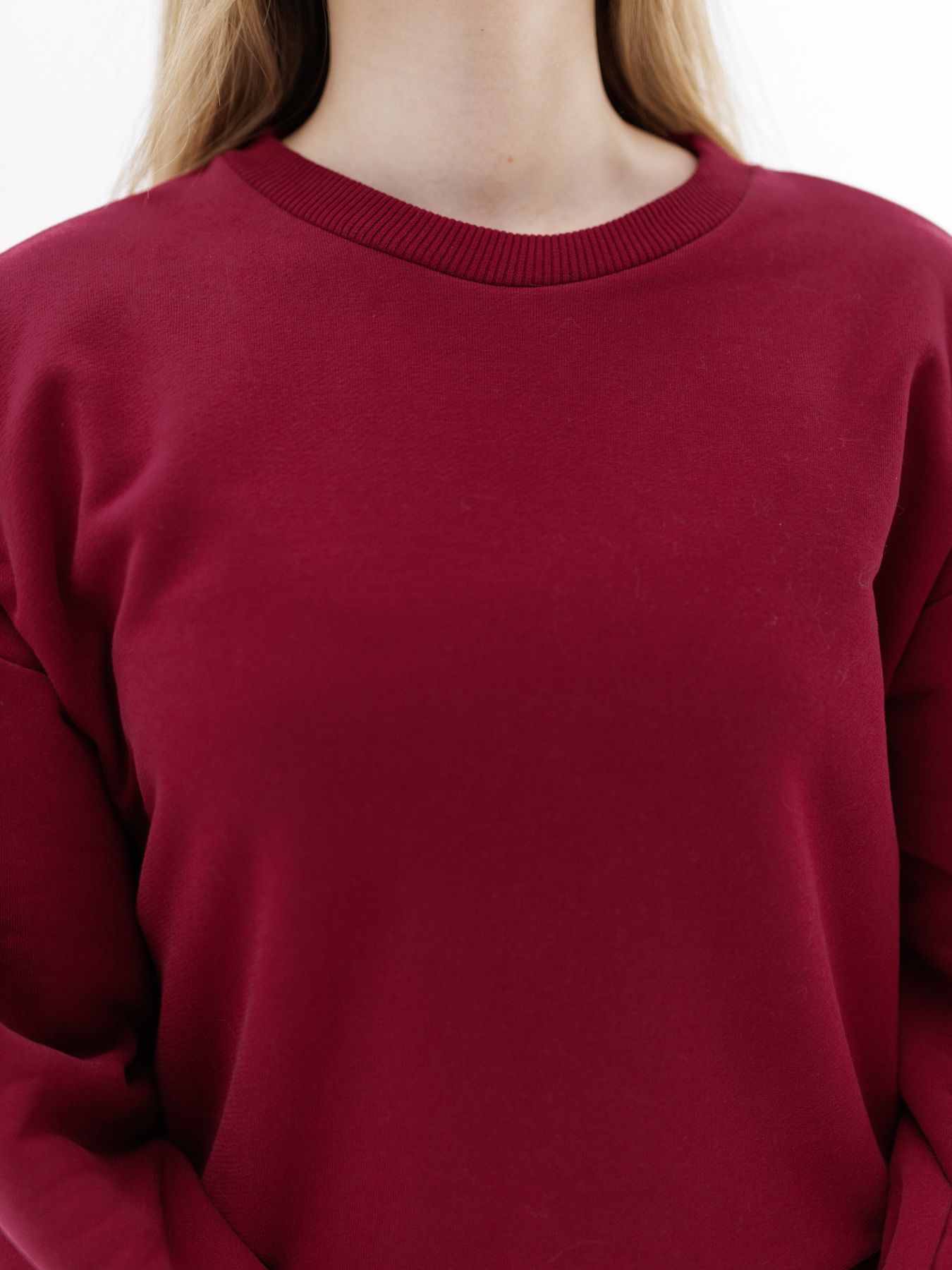 Свитшот свободного кроя с рукавами на манжетах в цвете брусника.