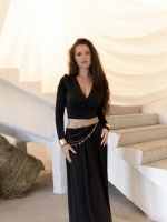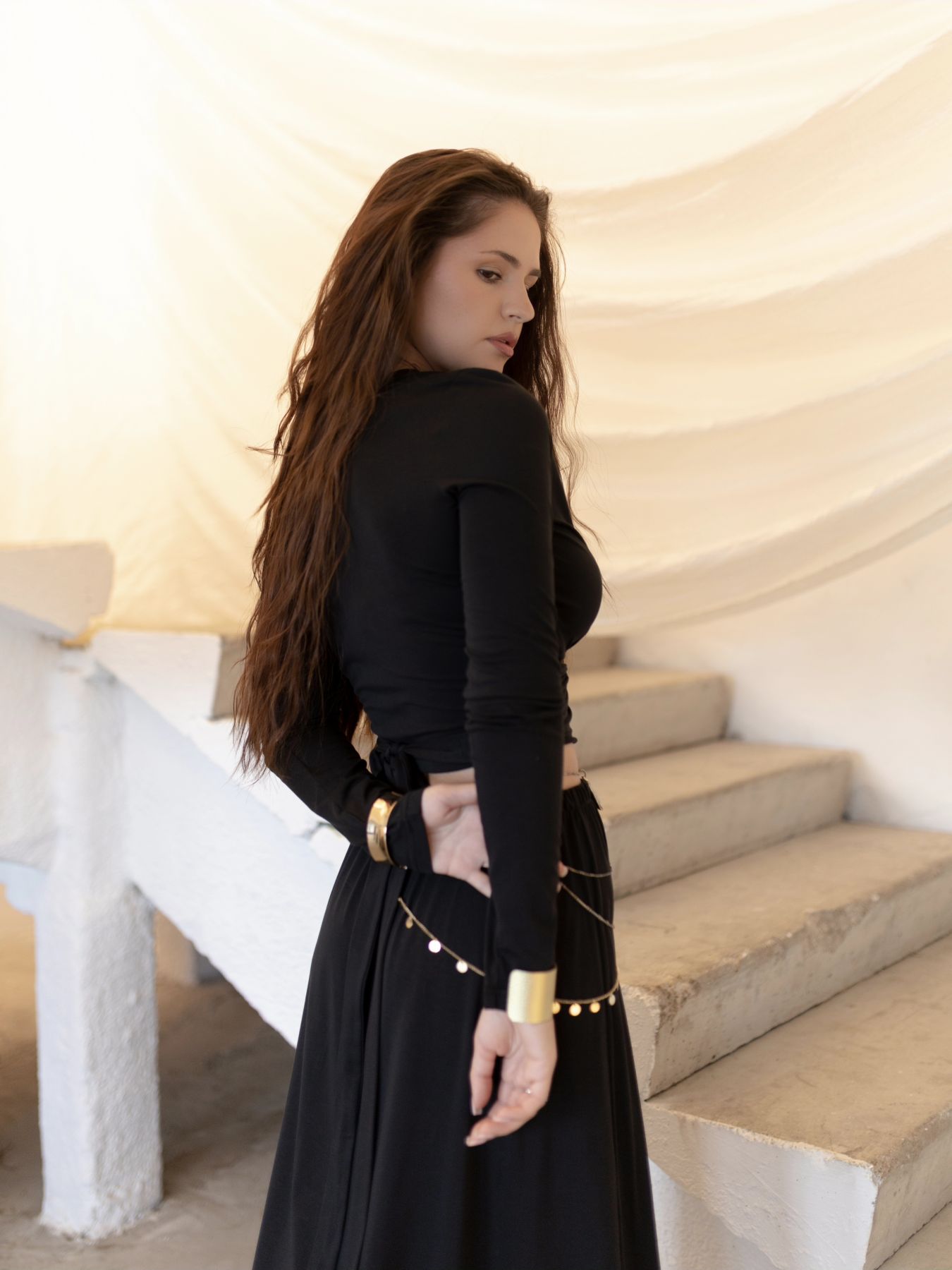 Кофта на запах с длинными завязками, сшита из экологически чистой ткани (эковискоза + кукуруза), ткань эластичная и очень нежная на прикосновение. Кофту также можно носить другой стороной, создавая более спортивный образ.