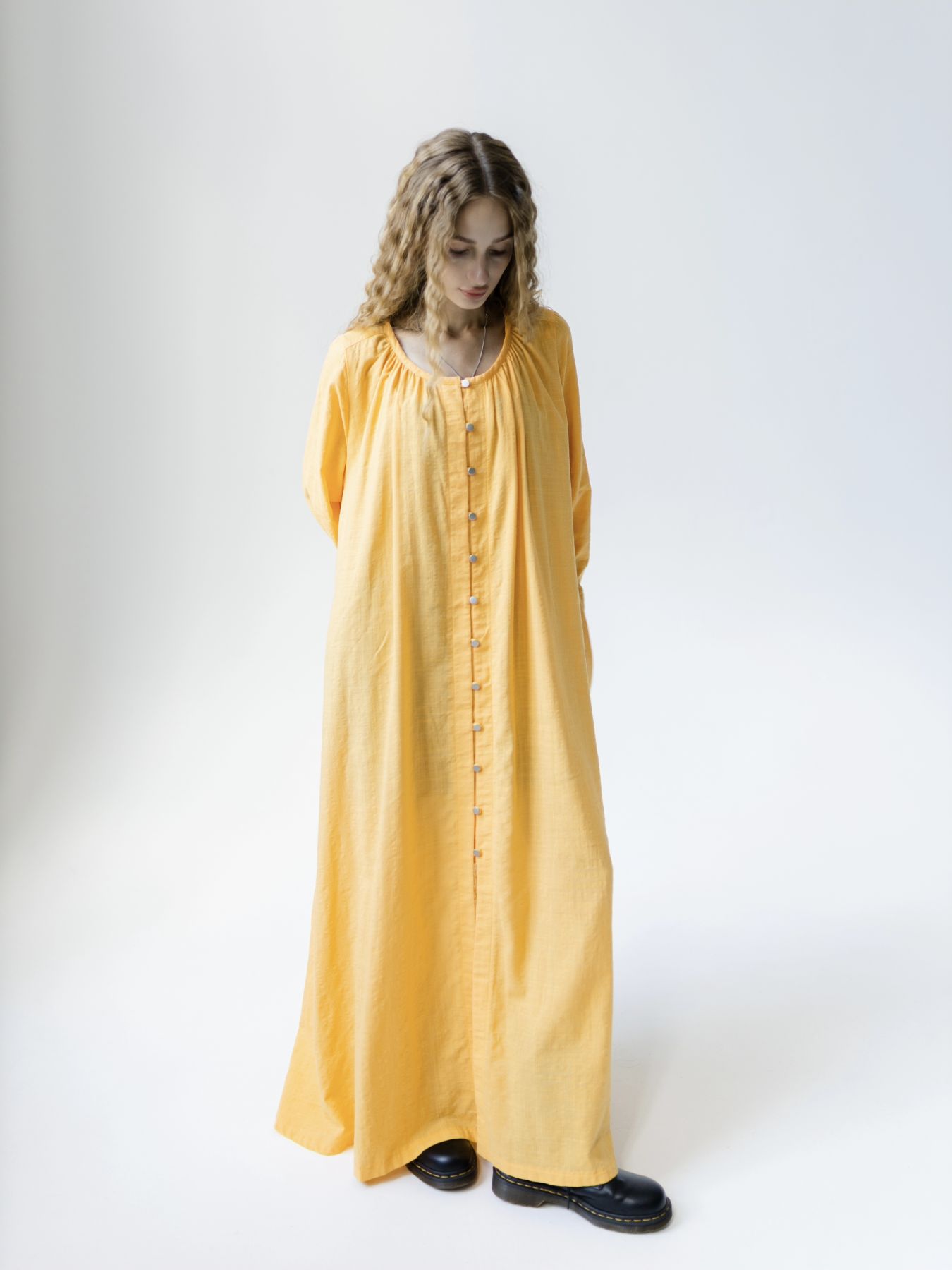 Женское длинное свободное платье из хлопка и вискозы на пуговках.