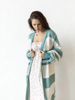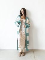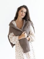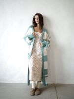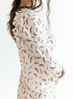 Платье бежевое из 100% бамбука (муслин) с принтом "Перышки". Длина миди с разрезом.