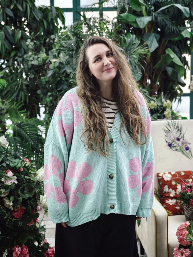 Свитер из качественной пряжи (шерсть + хлопок) в едином размере. Свитер мягкий и теплый в приятном голубом цвете.