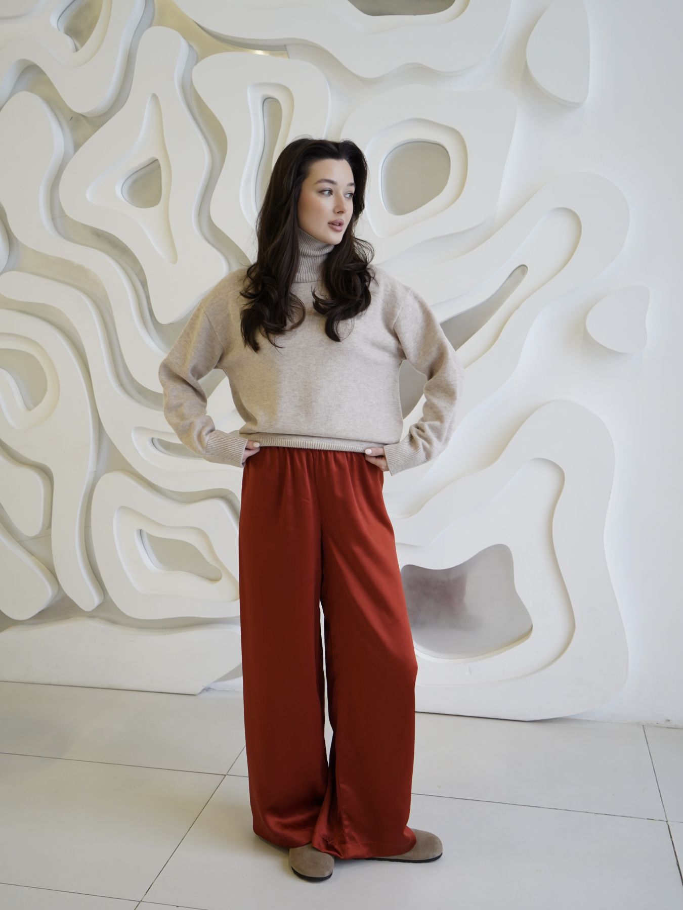Свитер из итальянской пряжи (кашемир и меринос) оверсайз кроя, в меру объёмный, теплый и очень уютный.