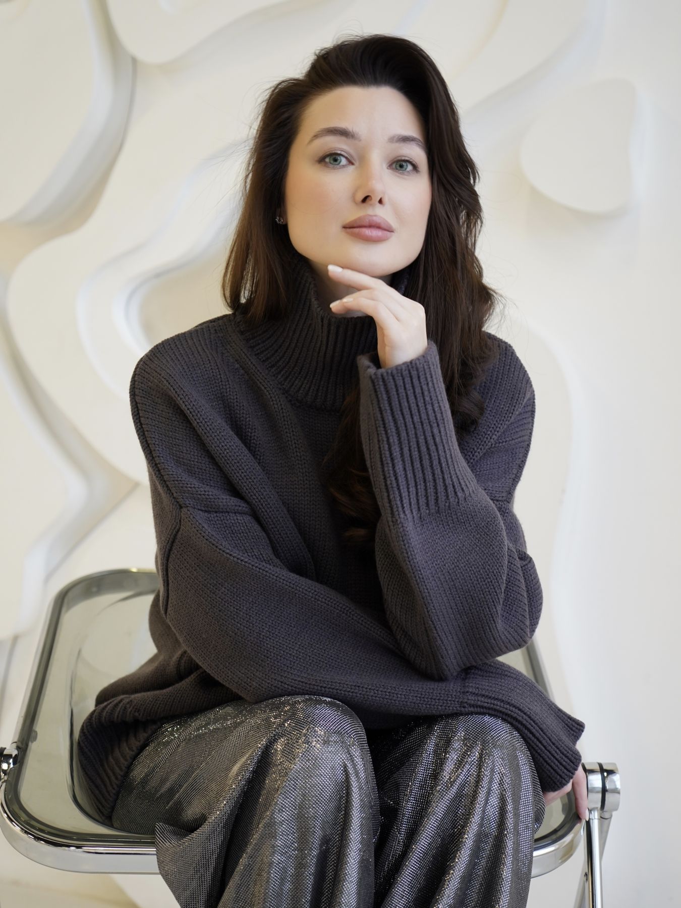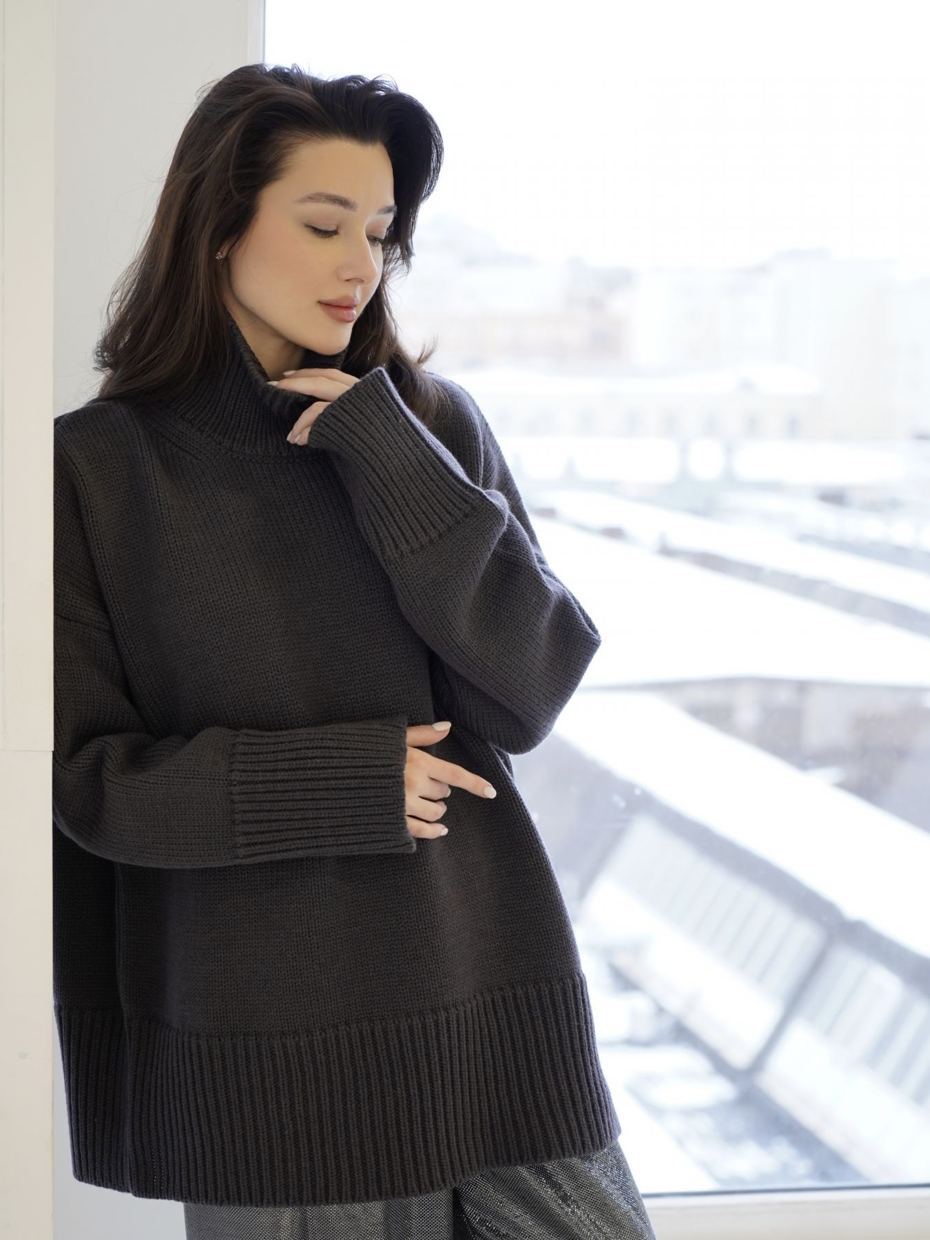 Свитер из мериноса оверсайз кроя, объёмный, теплый и уютный.