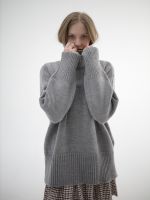 Шерстяной свитер однотонный серого цвета оверсайз кроя с широкой стойкой.