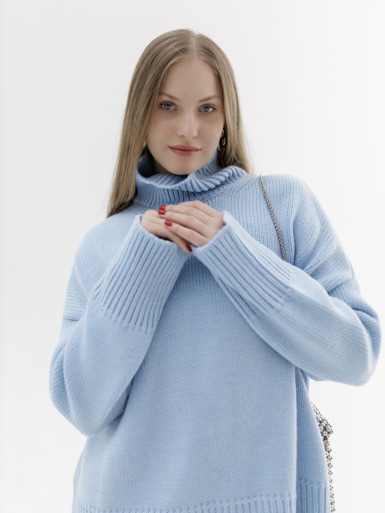Свитер из мериноса оверсайз кроя, объёмный, теплый и уютный.