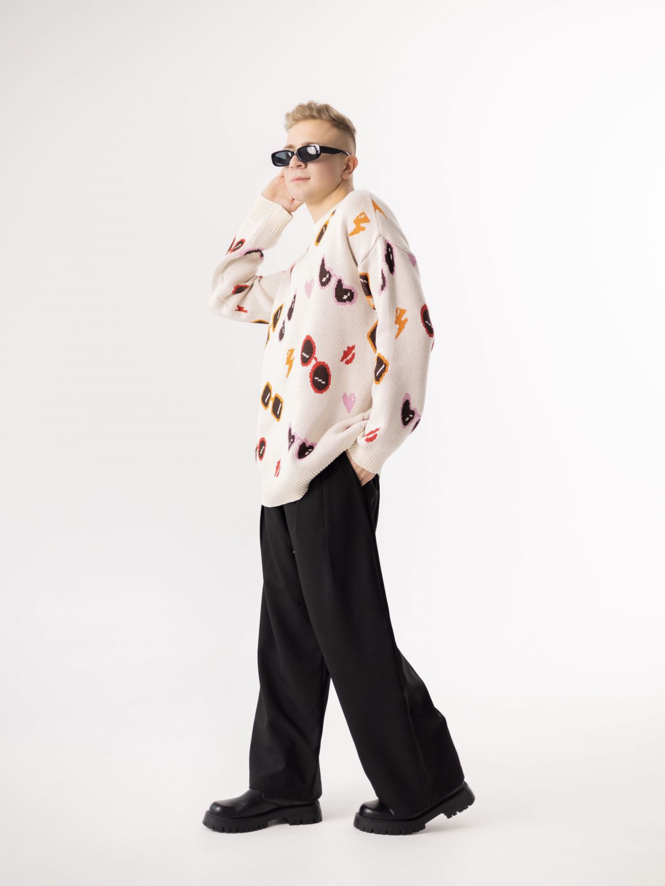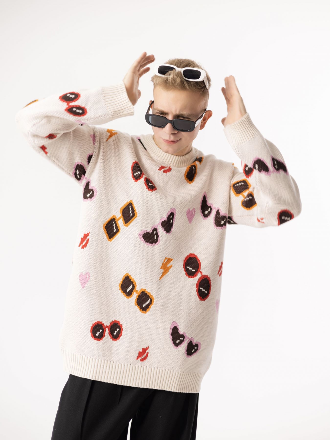 Свитер с разноцветными очками - авторский принт.