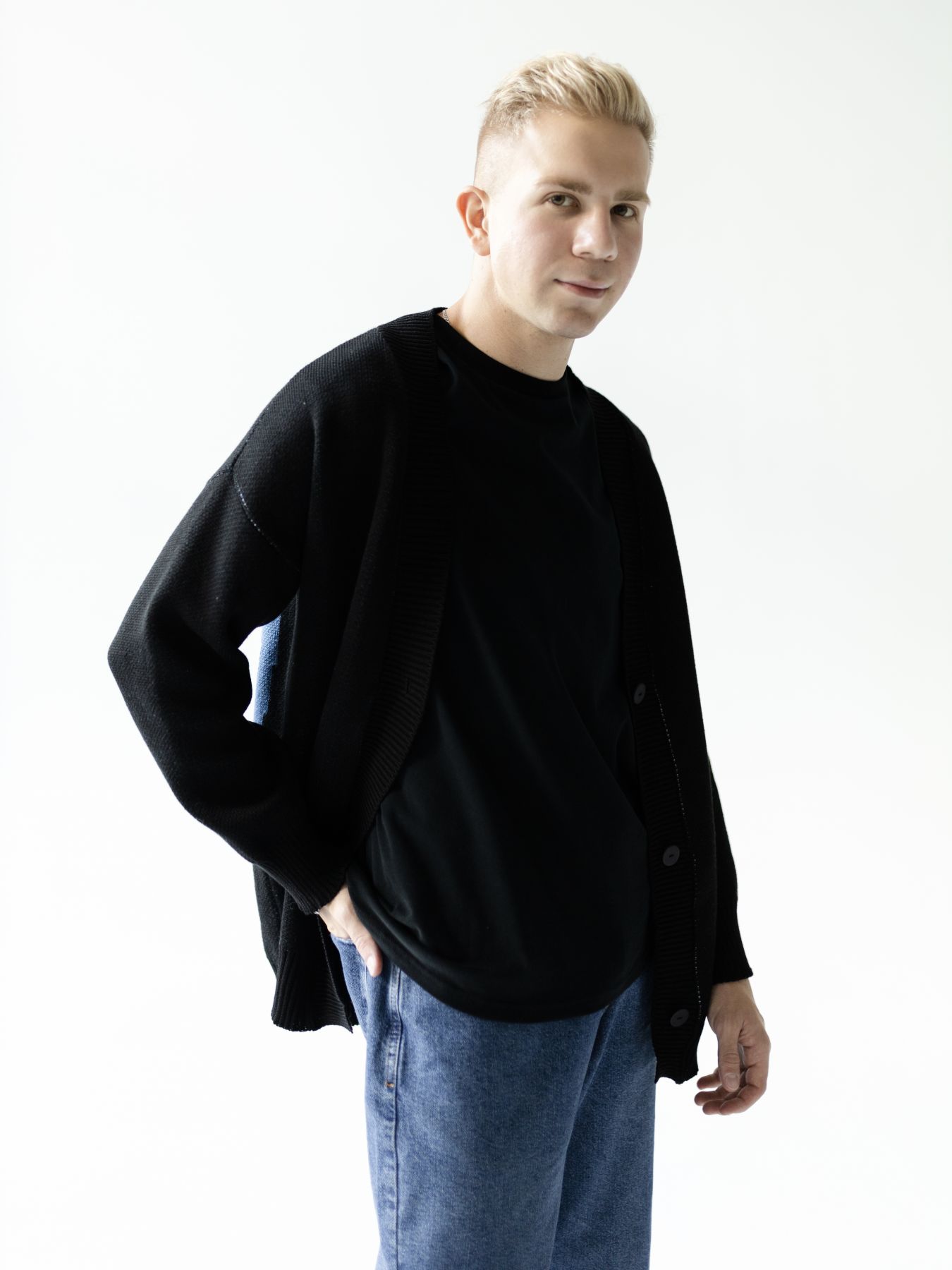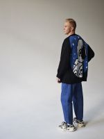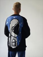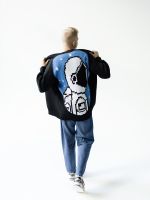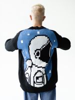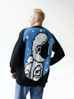 Хлопковый кардиган на пуговицах черного цвета с большим космонавтом на спине.