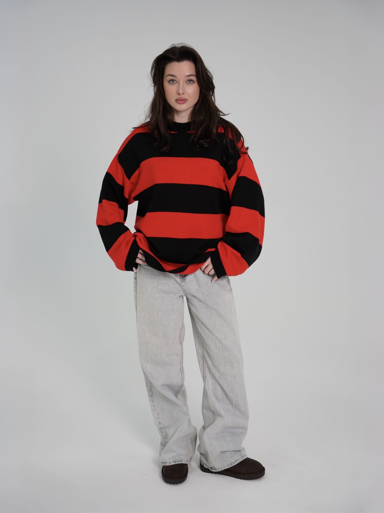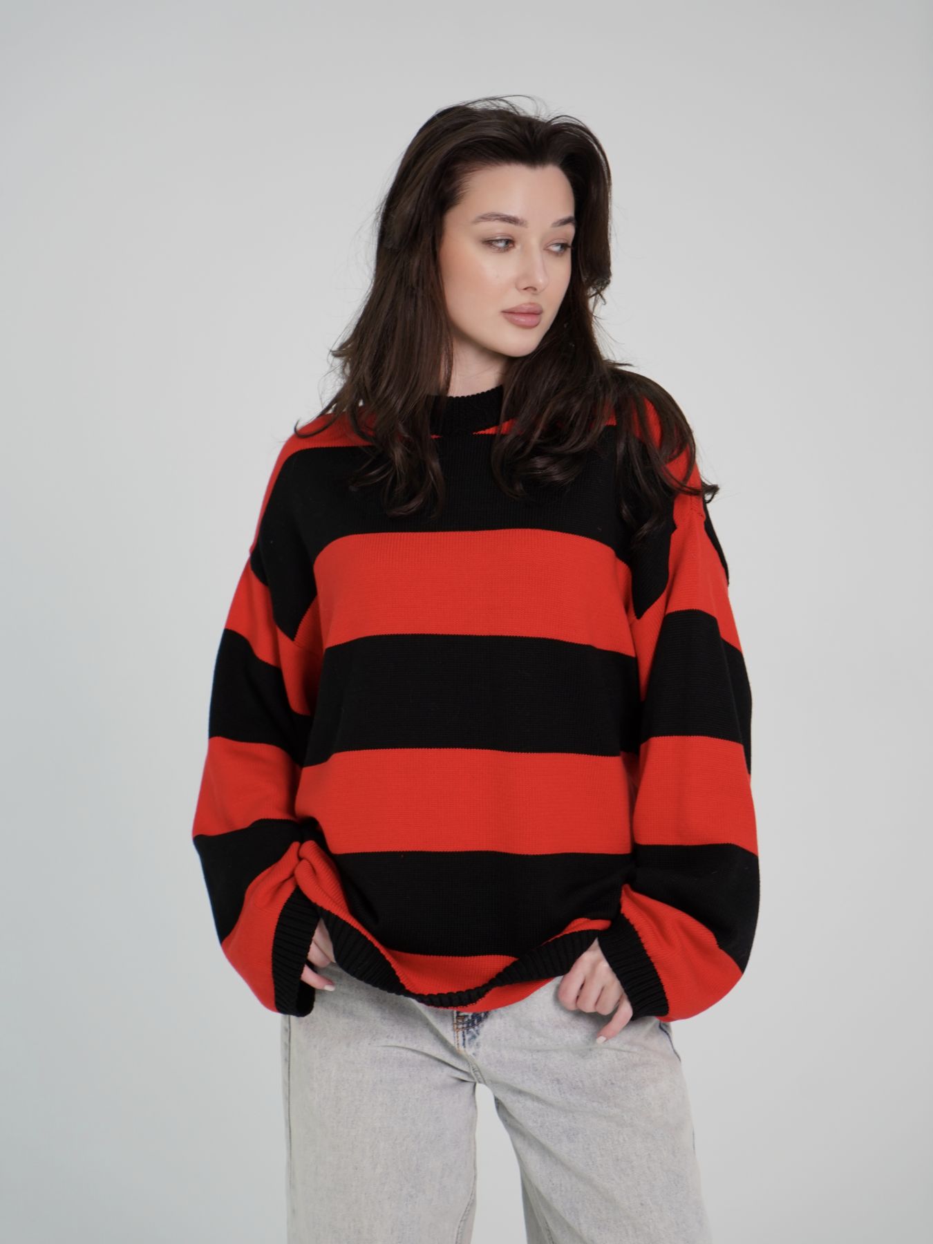 Дизайнерский свитер из качественной пряжи (шерсть + хлопок) в едином размере. Свитер мягкий и теплый, не колется.