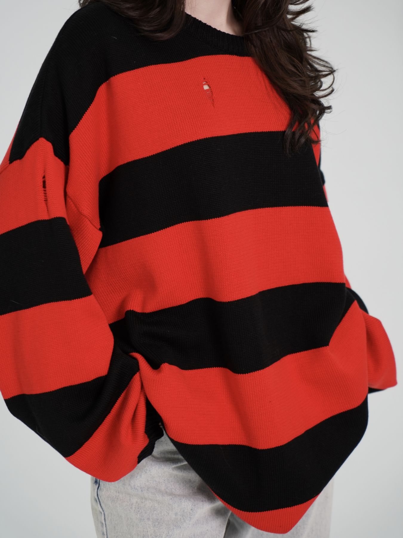 Свитер объемный в полоску с широкими рукавами и затяжками