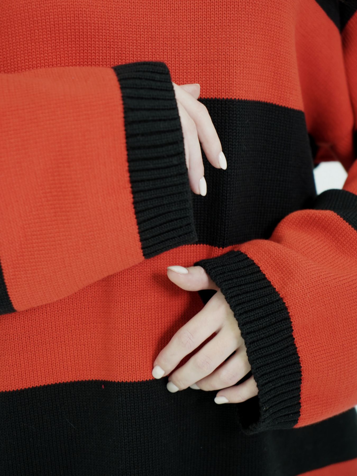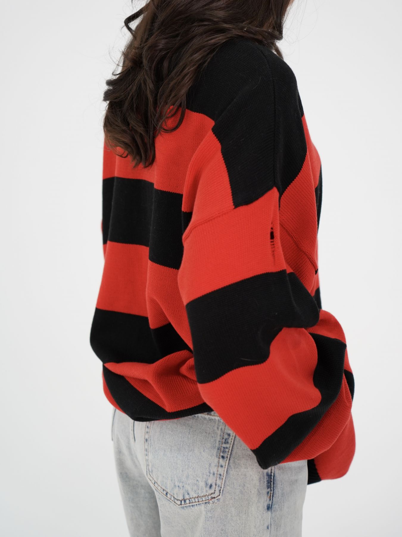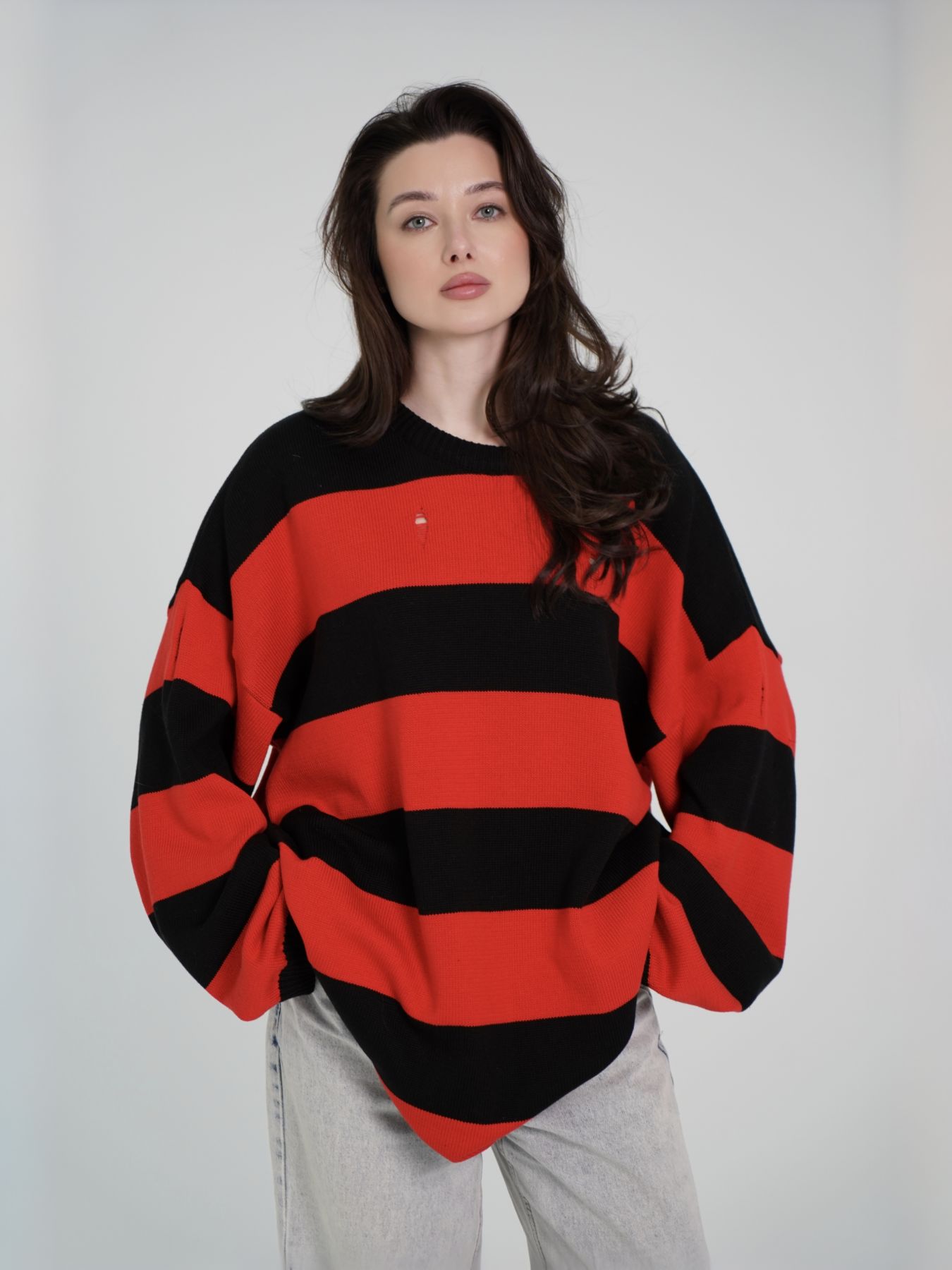 Свитер объемный в полоску с широкими рукавами и затяжками