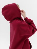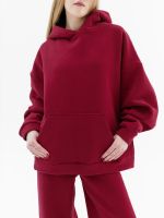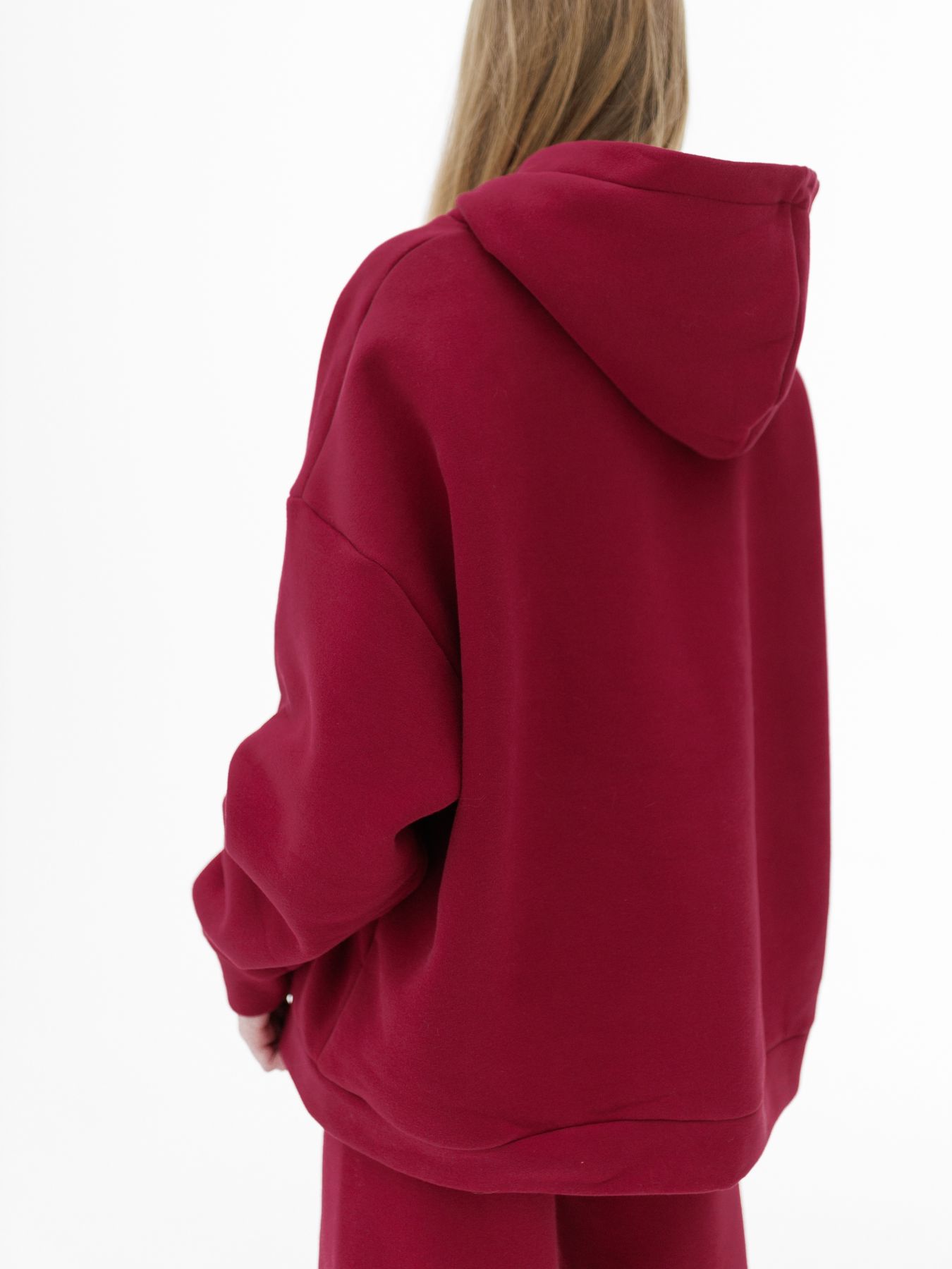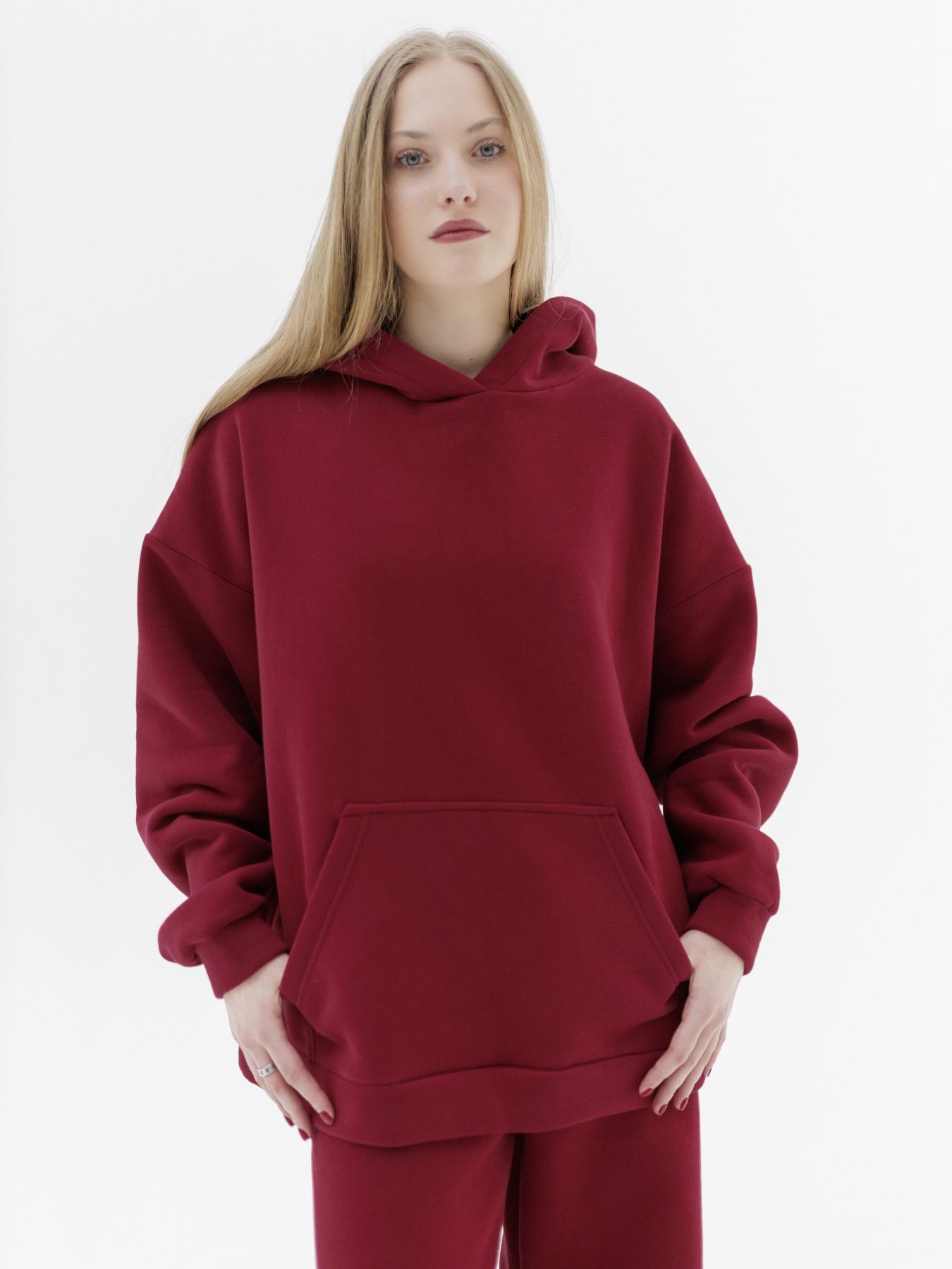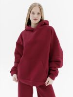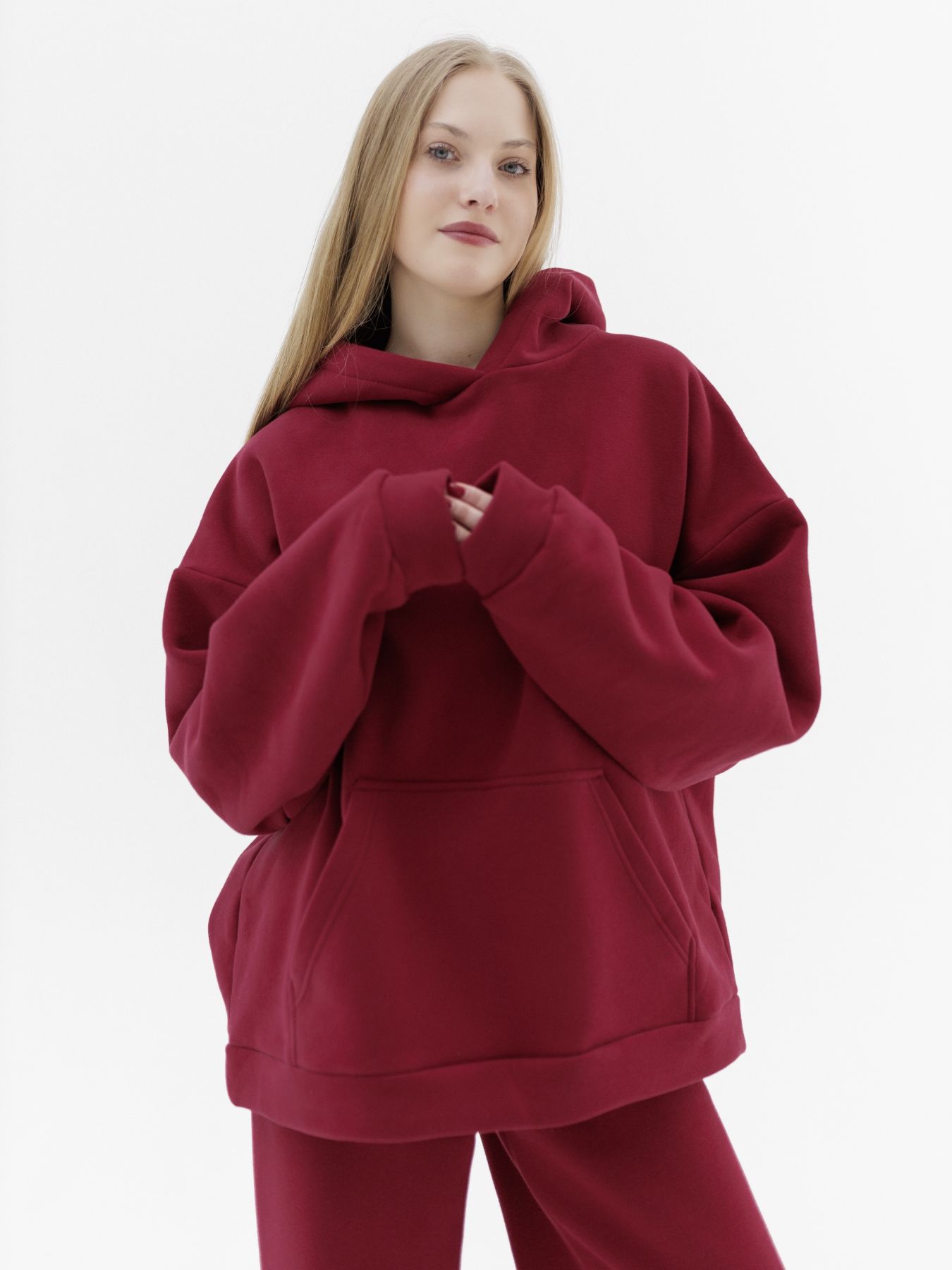 Худи с капюшоном и карманом оверсайз из мягкого плотного футера с эффектом велюра с начесом в бордовом цвете "брусника"