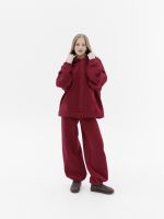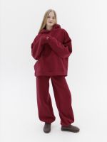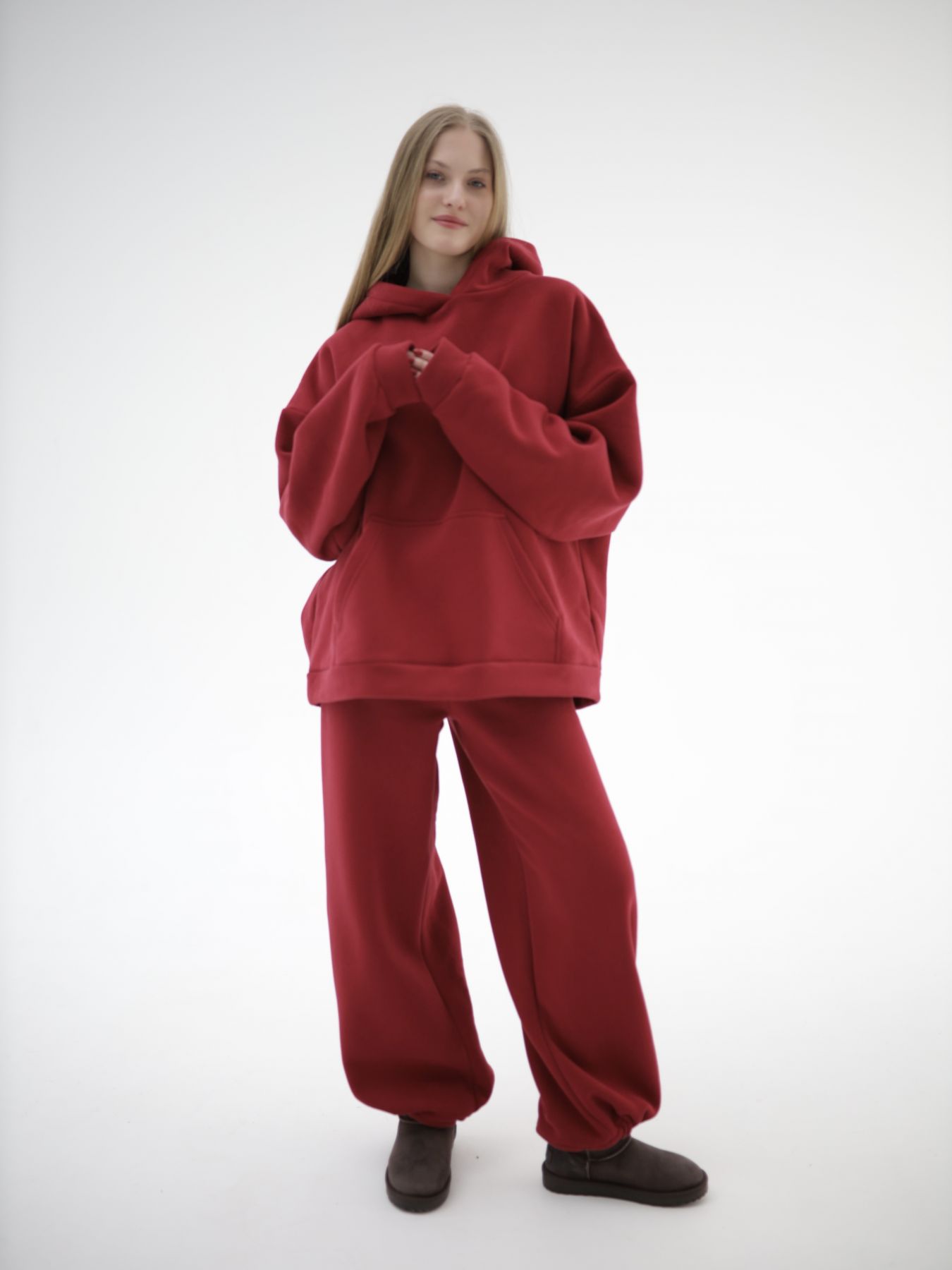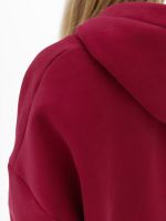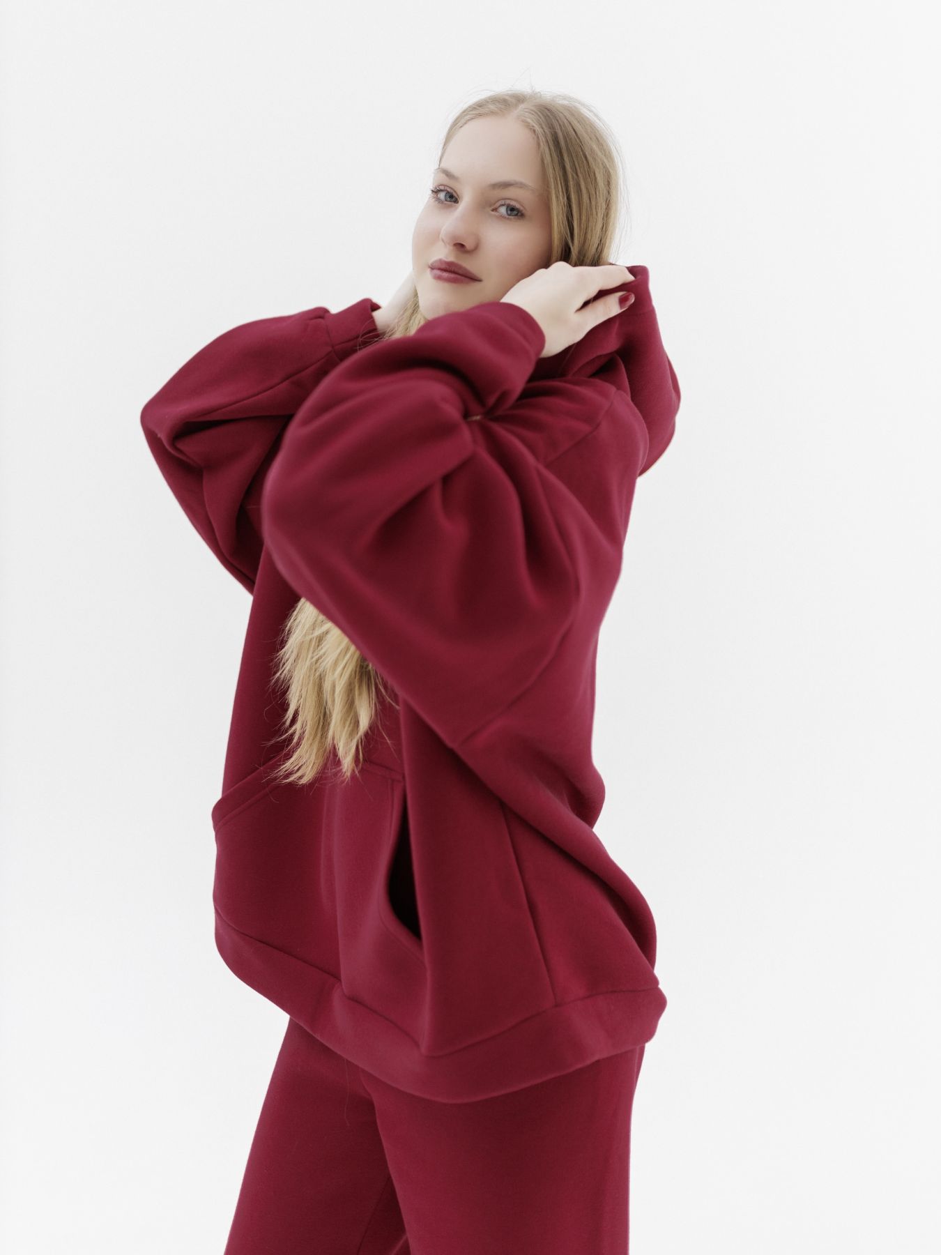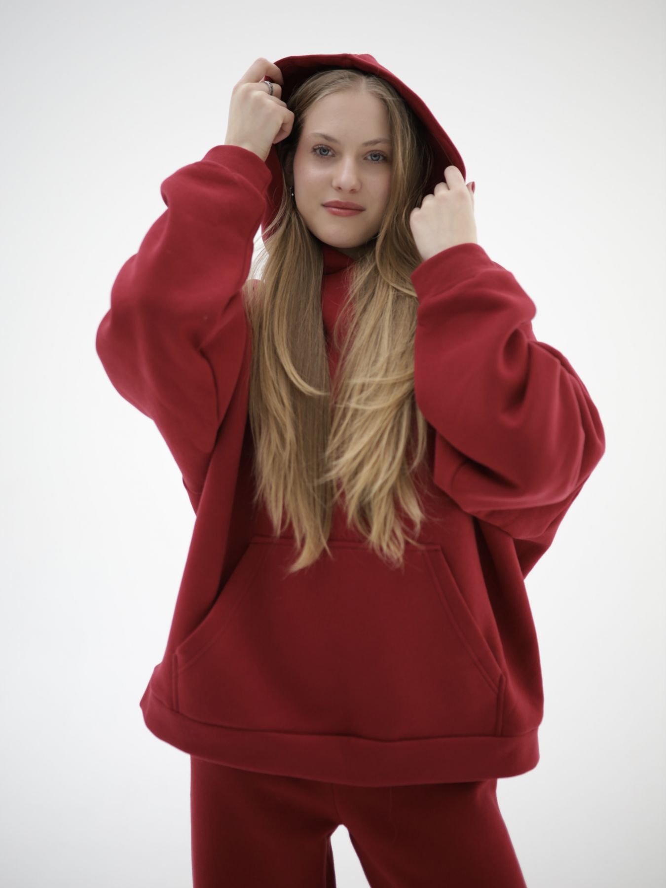 Худи с капюшоном и карманом оверсайз из мягкого плотного футера с эффектом велюра с начесом в бордовом цвете "брусника"