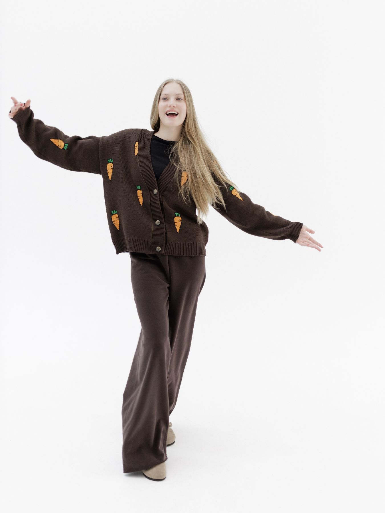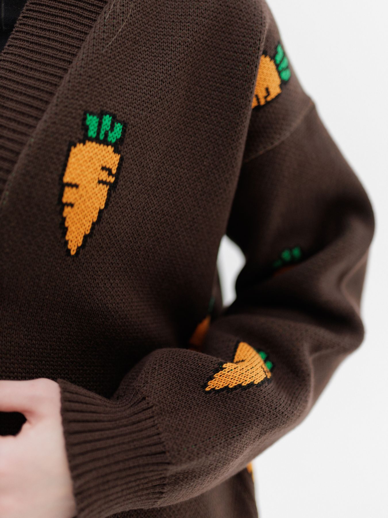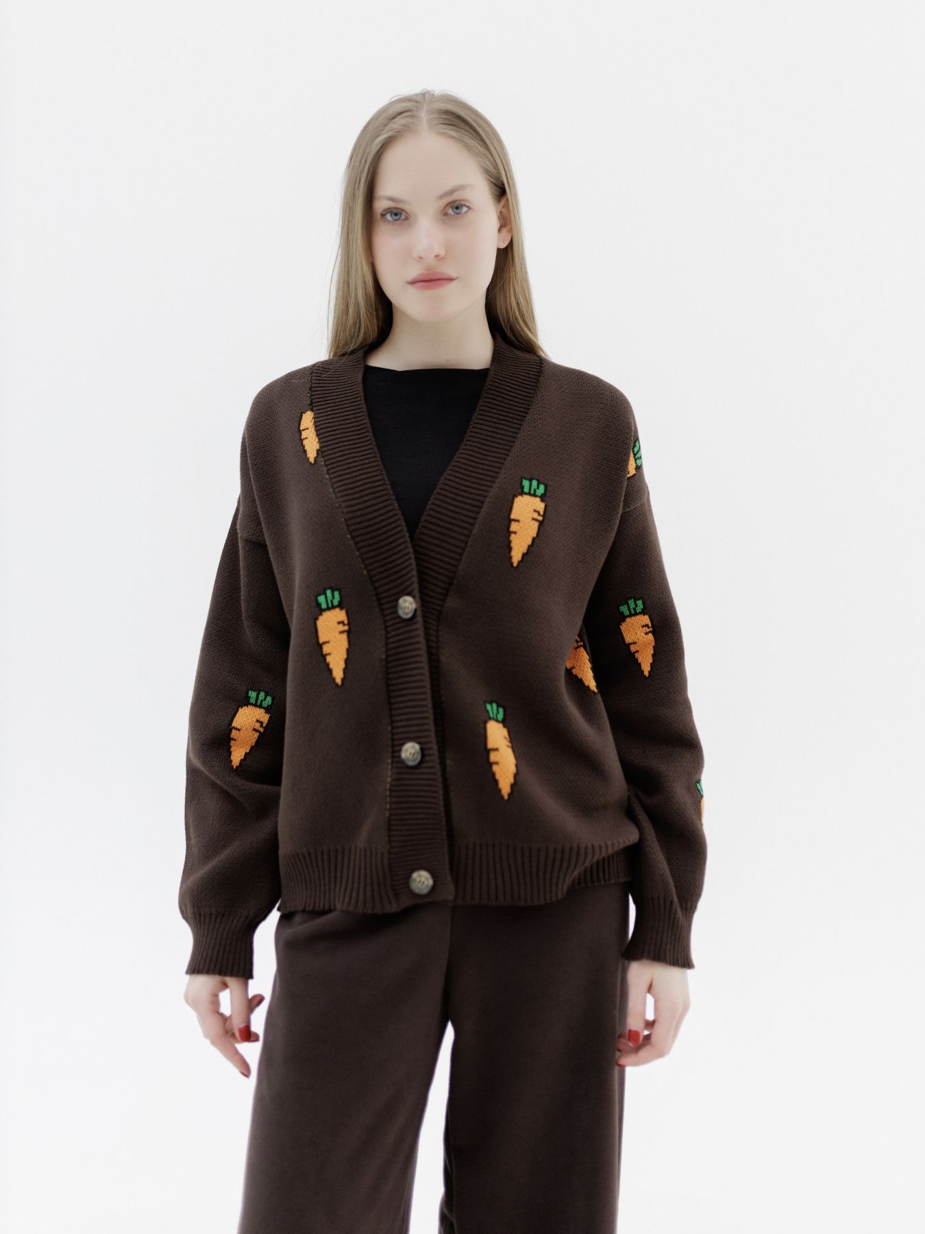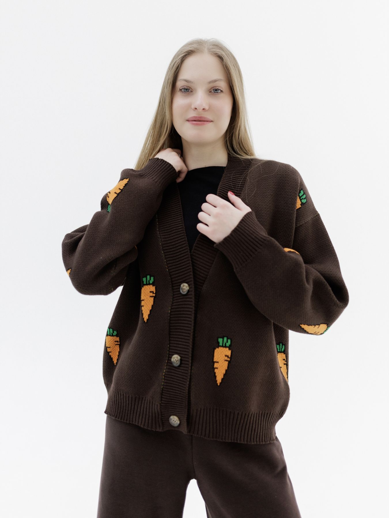 Дизайнерский кардиган малого объема из качественной пряжи (шерсть + хлопок). Кардиган мягкий и теплый, на пуговицах, все принты разрабатываются нами в мастерской.