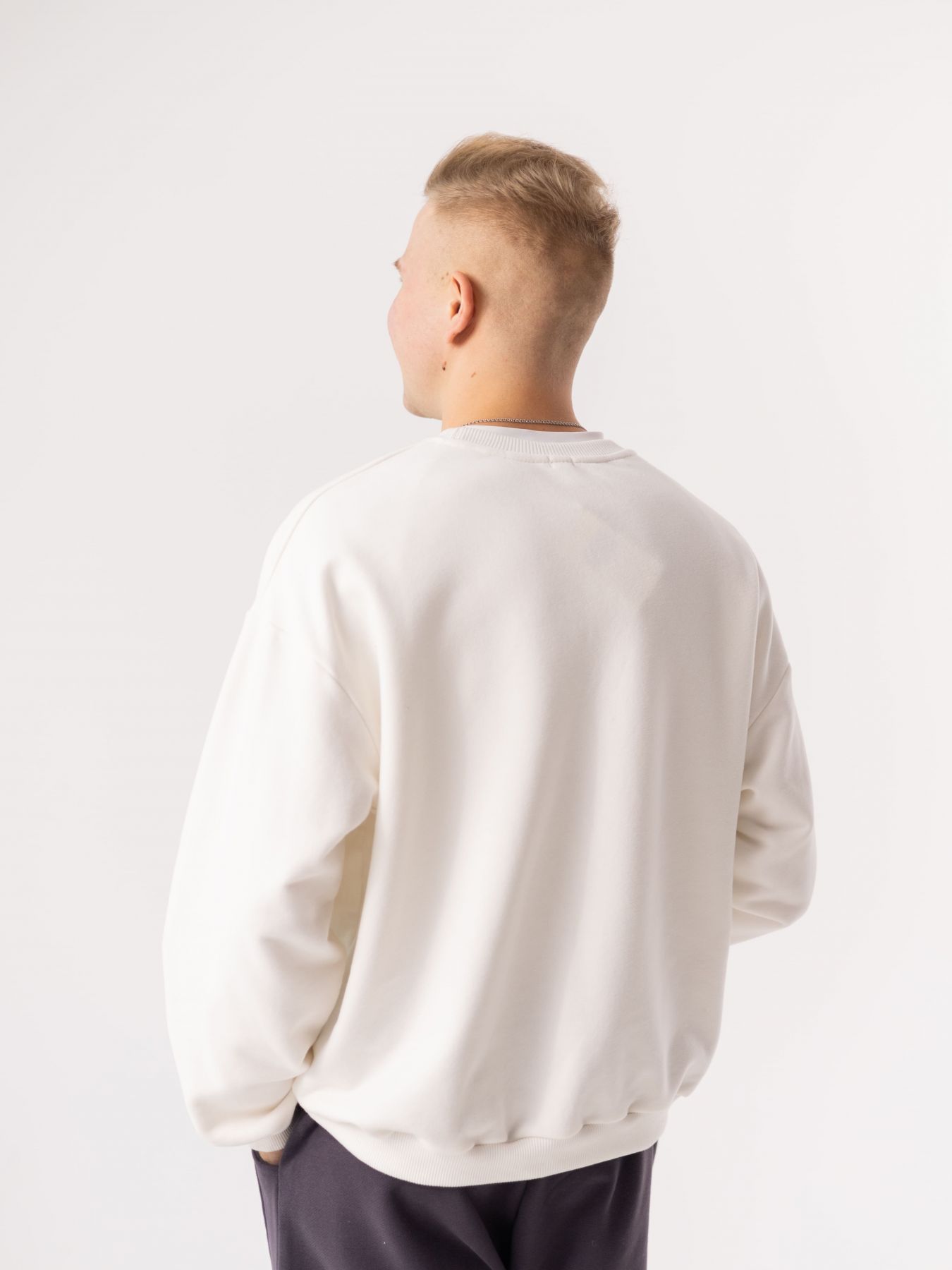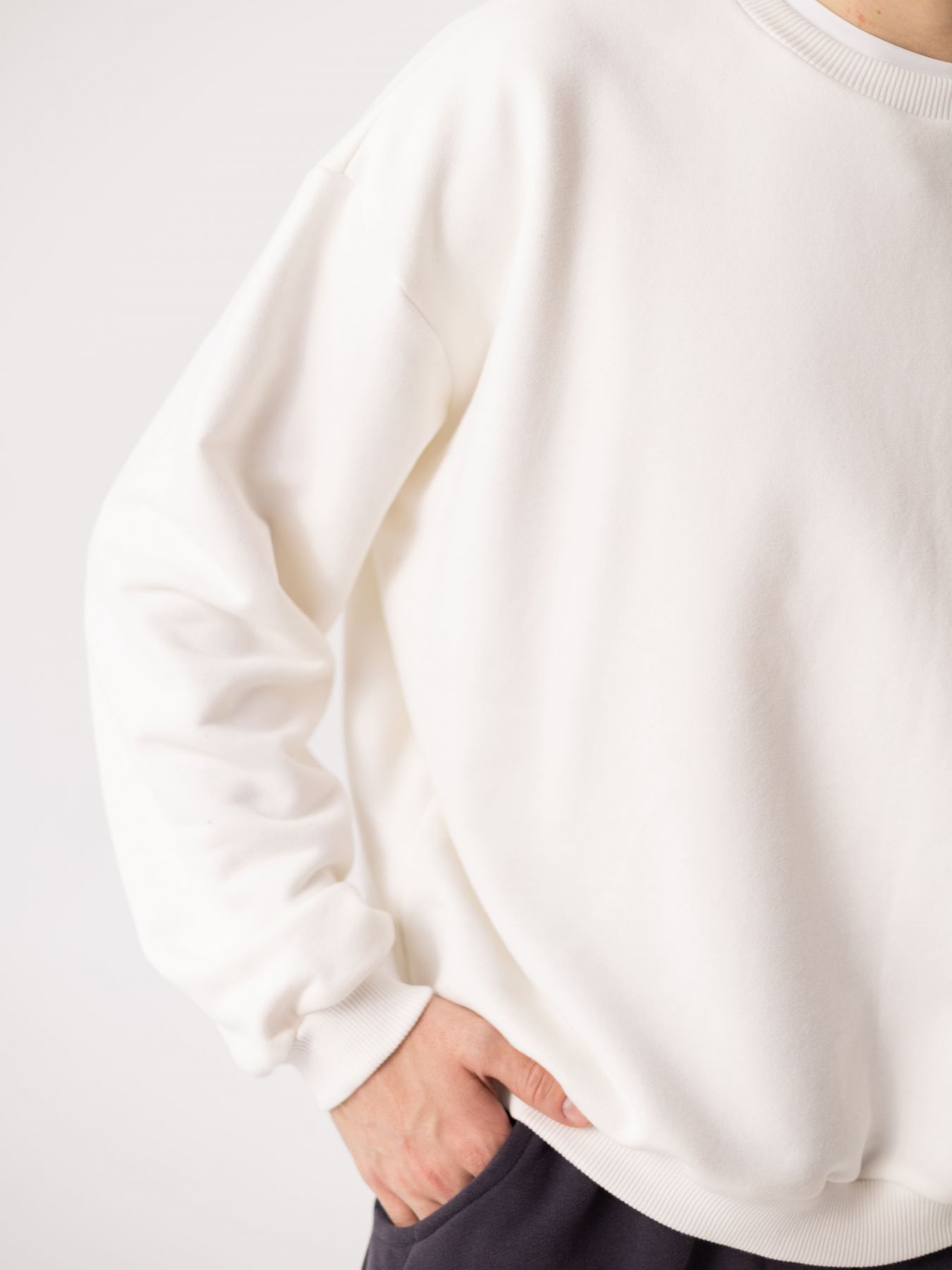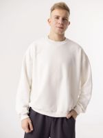 Свитшот с опущенным плечом в молочном цвете без начеса.