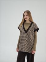 Жилет из итальянского твида - мягкий, комфортный, с красивым плетением в шоколадном цвете.